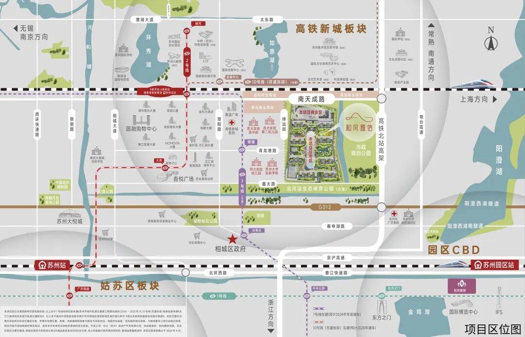 这里正崛起为长三角的交通心脏。京沪高铁与通苏嘉甬高铁、苏锡常城铁与如通苏湖城铁将在此交汇,形成黄金“双十字”枢纽。未来,扩建后的苏州北站规模将达到“12台28线”,定位国家级综合交通枢纽,让你轻松链接上海、杭州等核心城市,真正实现一小时都市圈生活。
