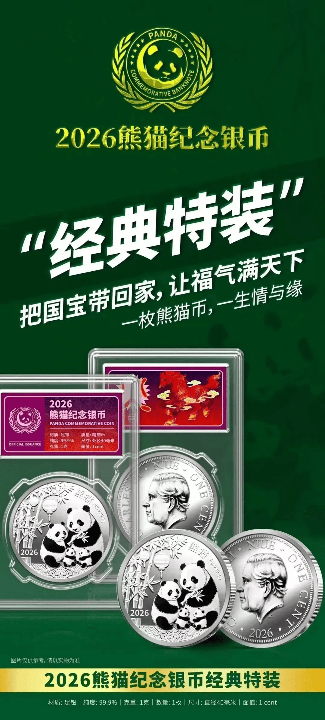 2026熊猫纪念银币就是纽埃以熊猫为核心,为致敬熊猫币首获世界硬币大奖40周年,纪念联合国成立80周年,将熊猫文化与货币文化完美融合,发行纪念。