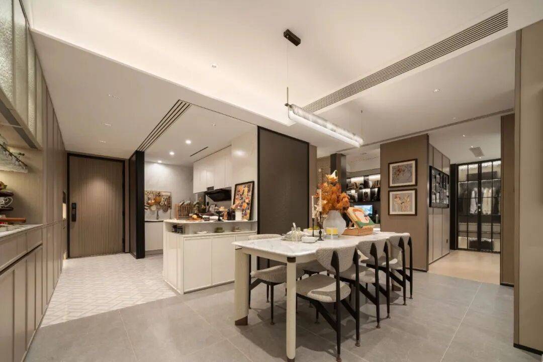 客餐厨阳一体化设计,空间利用率拉满,没有面积浪费的情况下,餐厅即便摆放6-8人大型餐桌,也依旧宽敞通透、不显局促。对于追求高品质生活的年轻家庭而言,700万级亲民总价,无需妥协居住格调,无疑是轻松上车的改善首选。