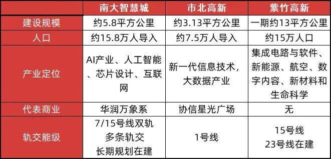 可以看到,在产业定位上,南大智慧城定位与其他两者相比,不遑多让;但是未来人口的密集程度,南大智慧城最高,这意味着更密集的产业需求,从而带动更庞大的居住需求。