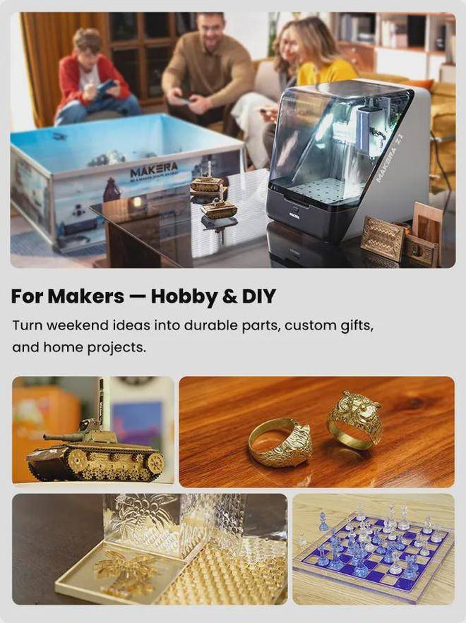 转折来自需求端的结构性变化。制造模式从大批量标准化转向多品类小批量快速迭代,跨境电商卖家的定制化需求爆发,疫情期间个人制造习惯被彻底催化,3D打印正是那时迎来爆发。而这种把制造能力掌握在自己手里的趋势在生活恢复后并未消退,反而持续深化。如今,购买创客设备用于小微创业或副业的用户比例已跃升至核心主力地位,部分热门机型的商用型用户占比甚至接近半数。3D打印、激光雕刻机、CNC早已不是小范围的极客玩具,而渐渐成为创客群体的变现工具。