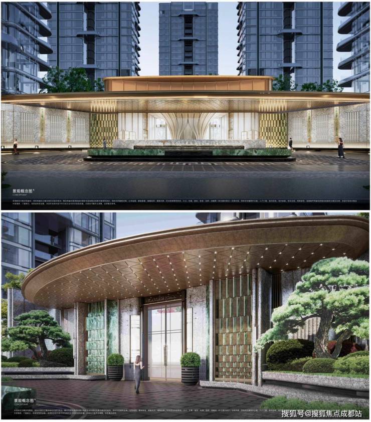三重门仪:社区主大门造型最大宽约百米、超阔尺度单元门、入户门彰显主人归家仪式,重塑归家排场,彰显门第威仪。